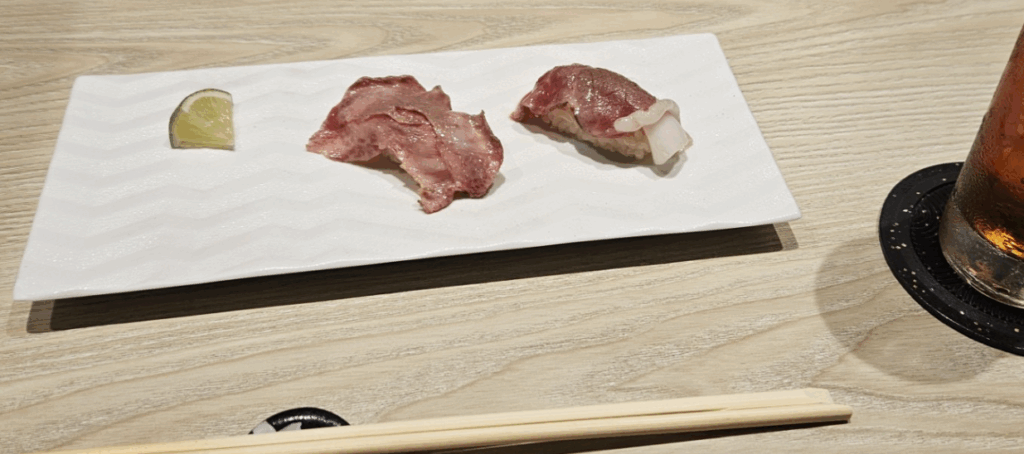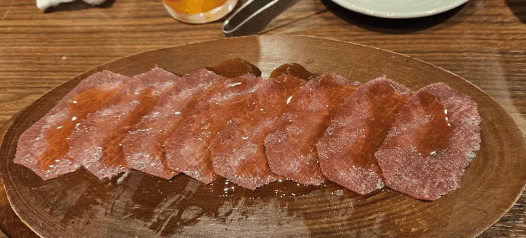 あか牛の赤身肉はしっかりとした嚙みごたえがありそして噛んでいくと口の中で溶けていく感覚 うまい注文したのは あか牛のタンと食べ比べのセット