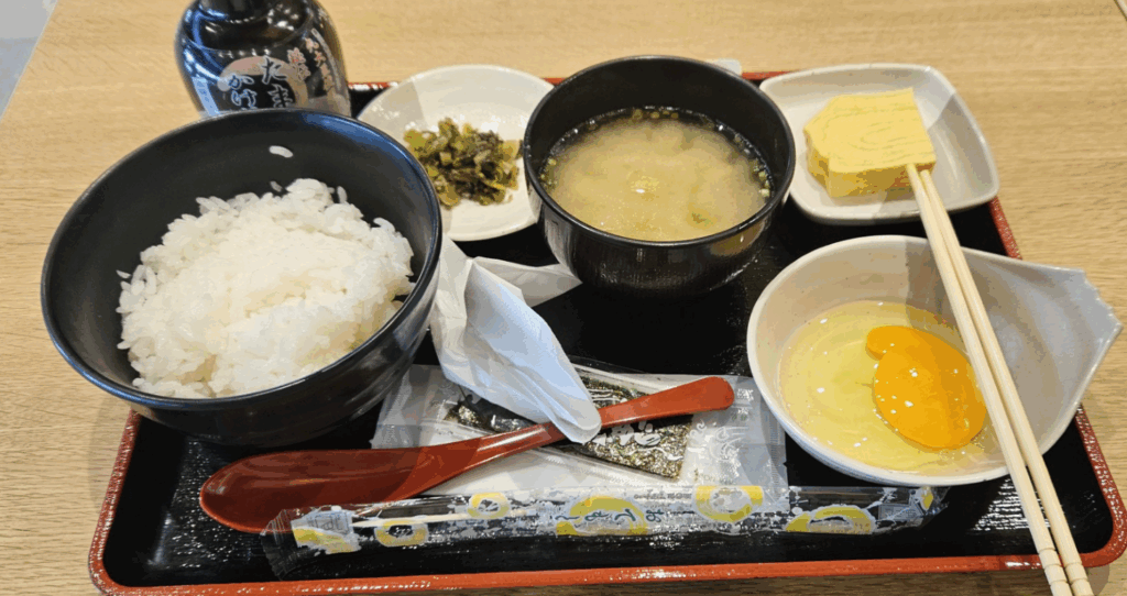 帰りの空港でも食は充実していて午後の飛行機の待ち時間にちょっとお食事 注文したのは卵かけご飯 略してTKG 多分空港で食える最高のTKG