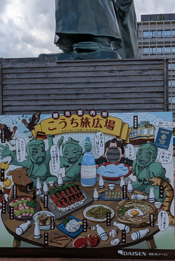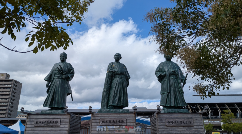 ひろめ市場には高知の海産物が目白押しで日本人より外国人が多かった 周辺には商店街がありごはんどころもあり落ち着いてごはんが食べたい人にはこちらもよいでしょう 高知の駅前には日本を変えた偉人達の像が飾っていてテンションが上がる 前日に岡山にいたんだけど岡山から高知駅まで約2時間30分位最初にも話たけどもバスは快適すぎた 鉄道でもそこまで時間は変わらない 岡山の旅行記はこちら